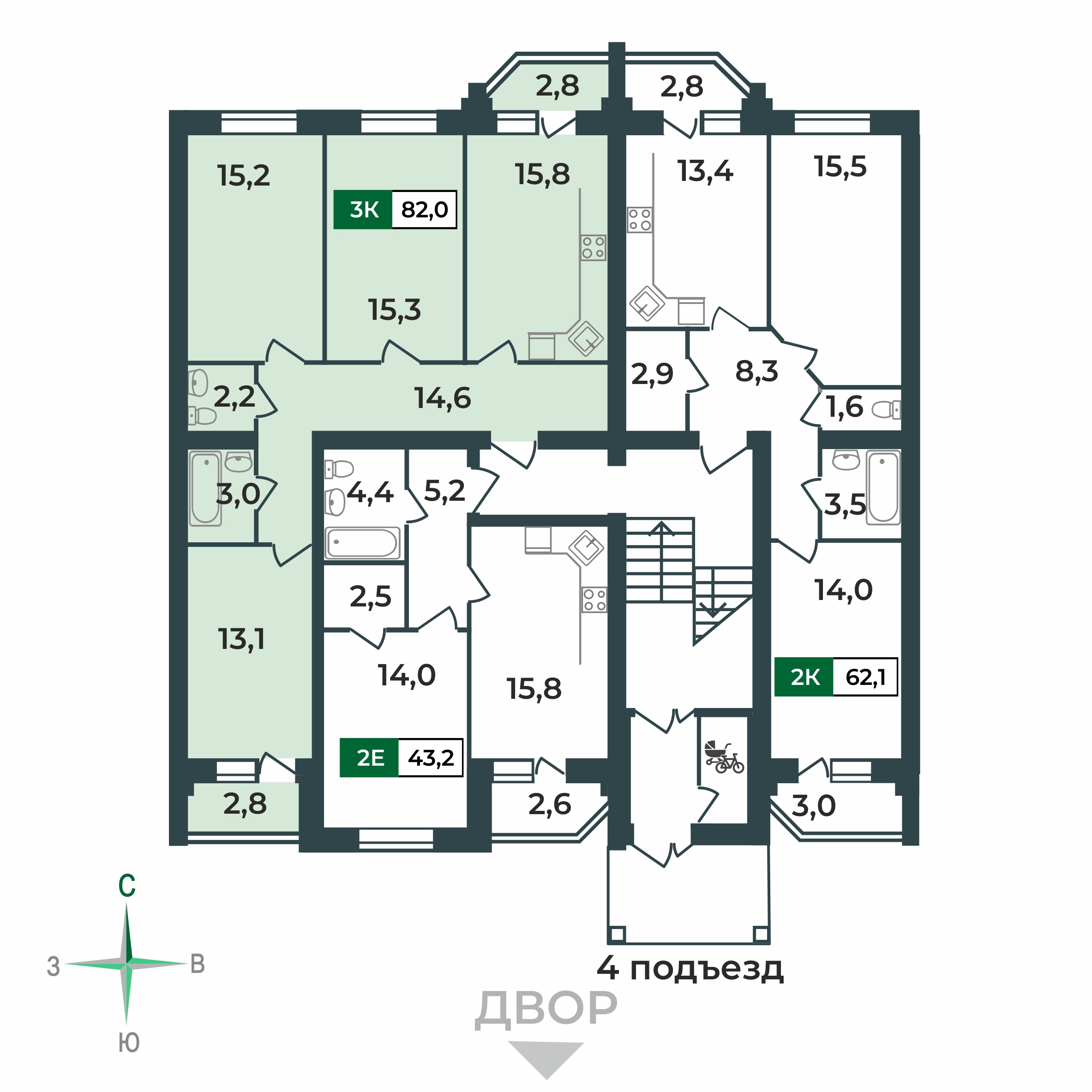 15.8 м²