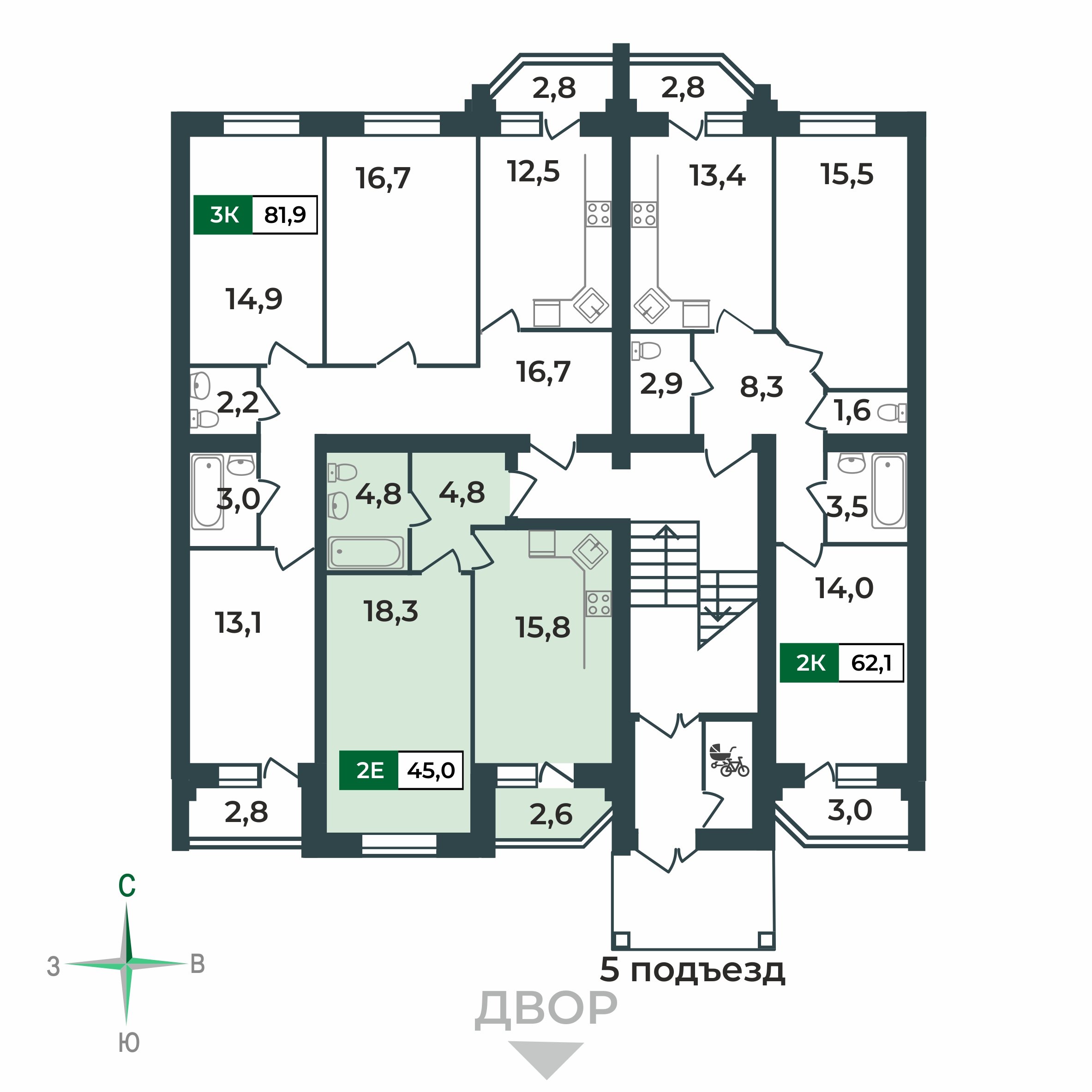 15.8 м²