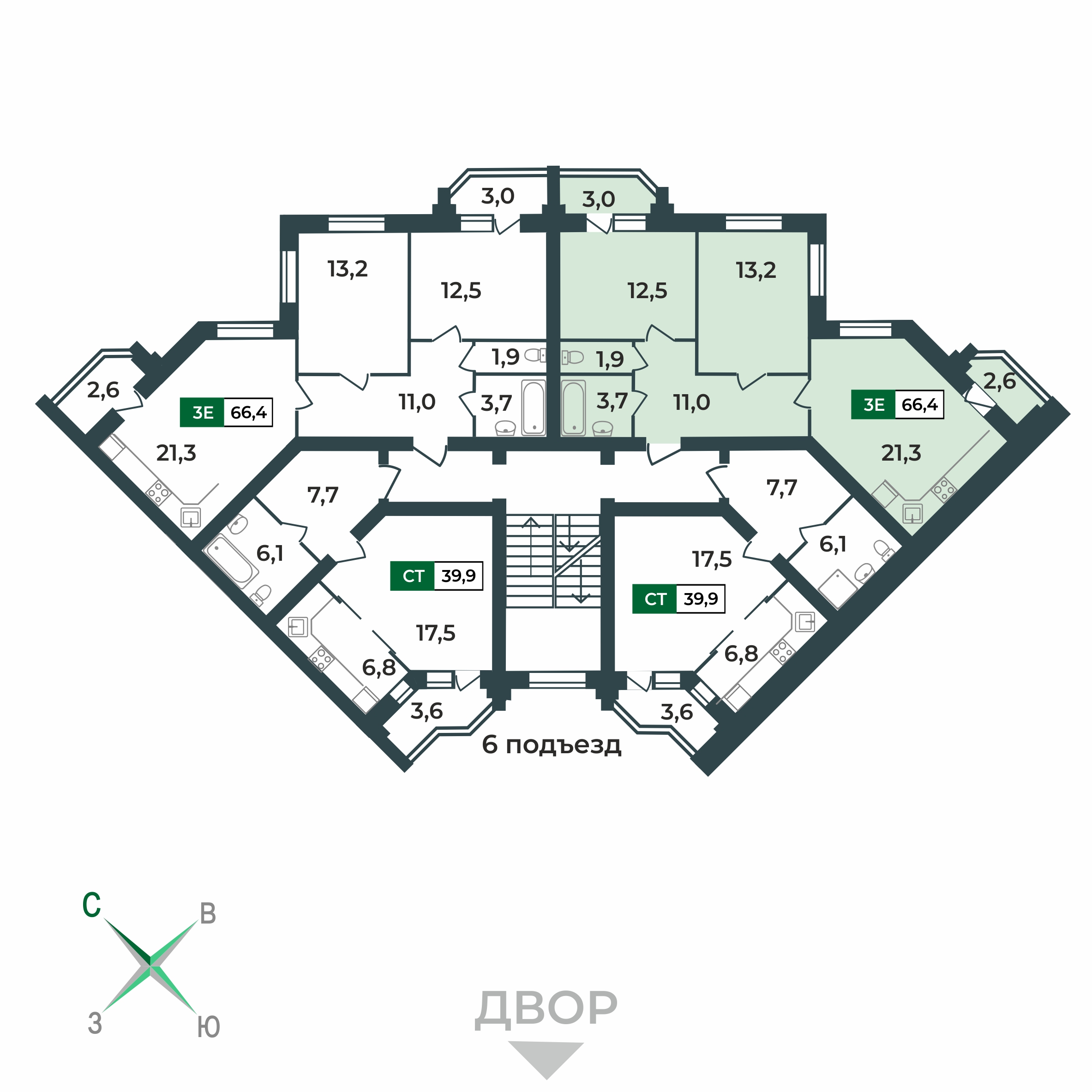 66.4 м²