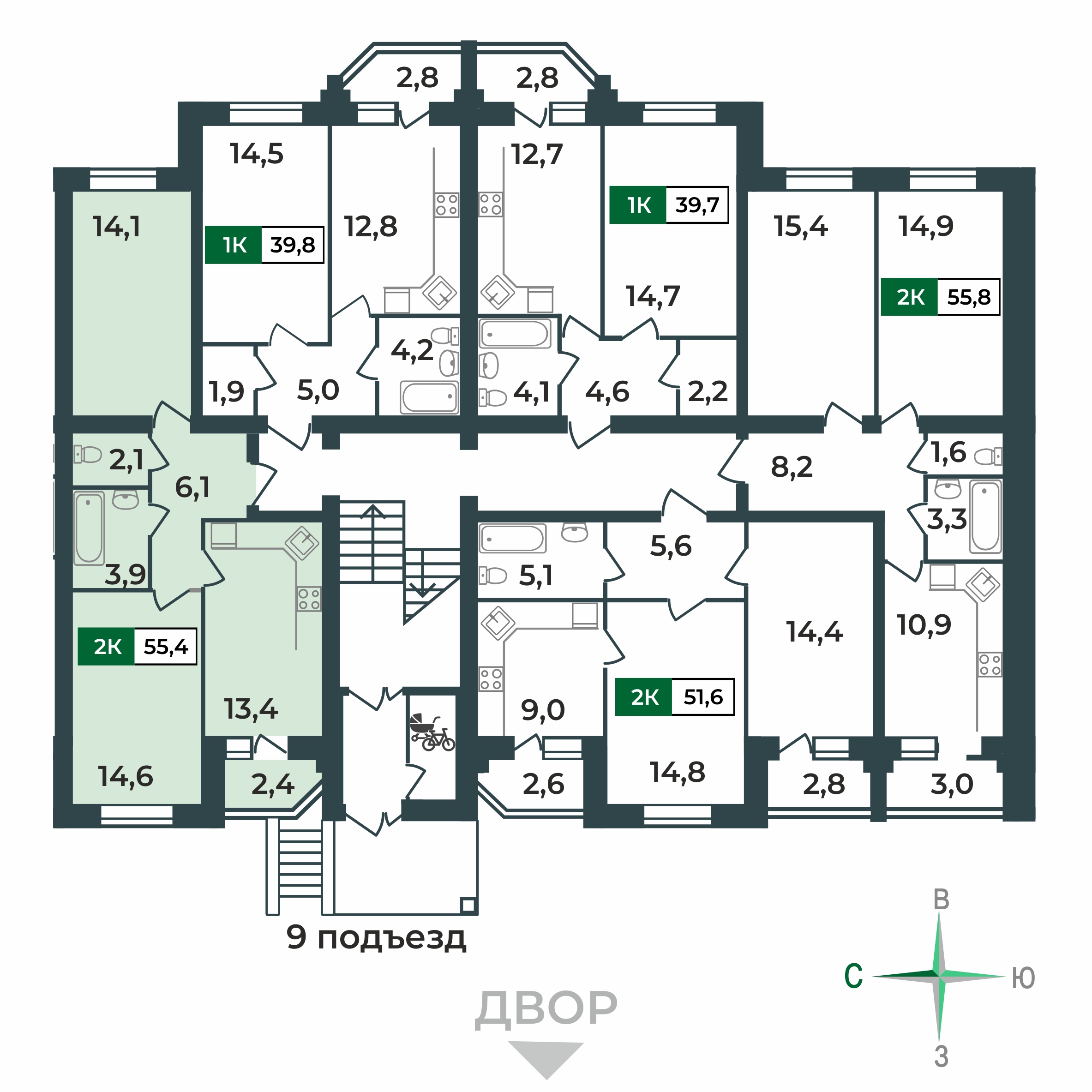 55.4 м²