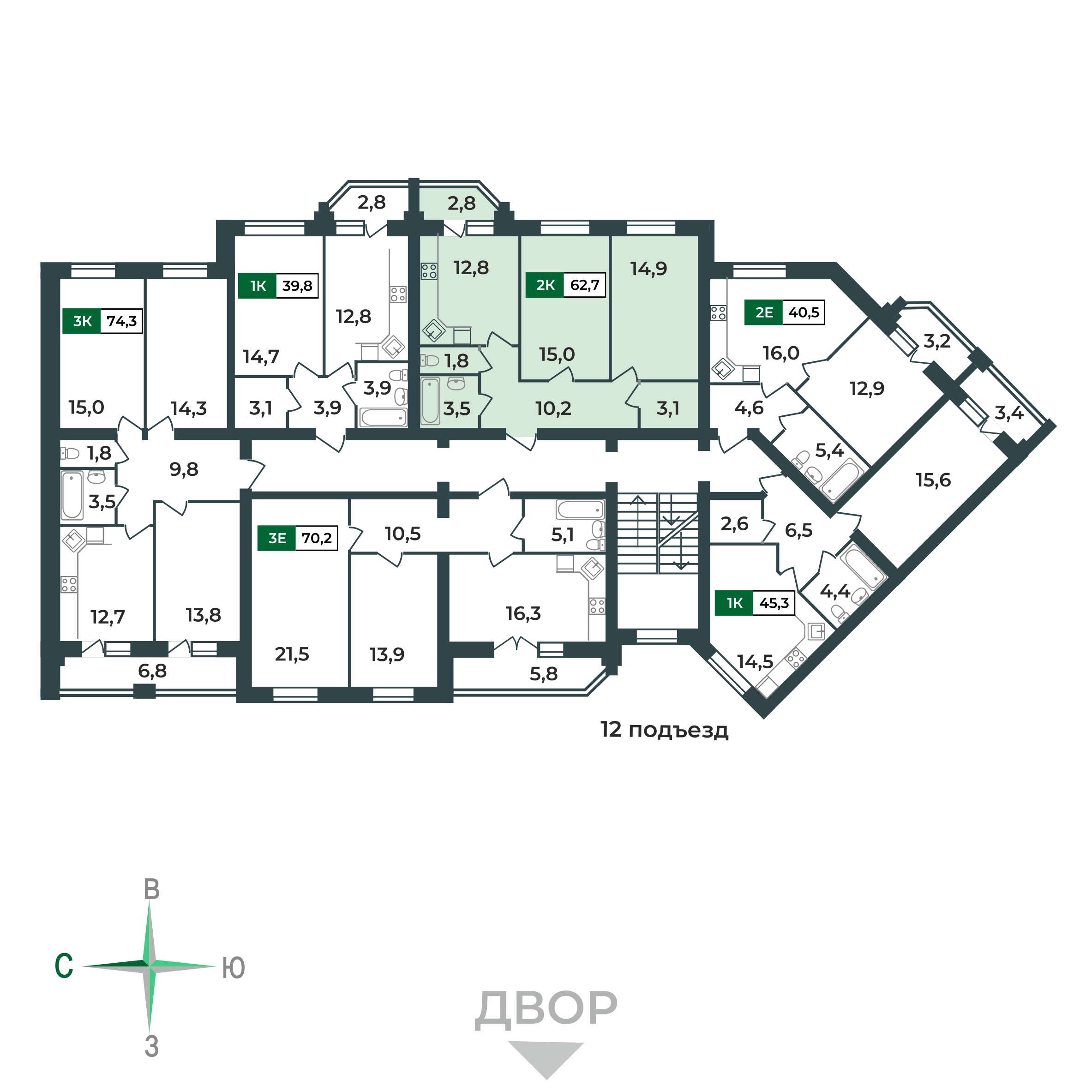 12.8 м²