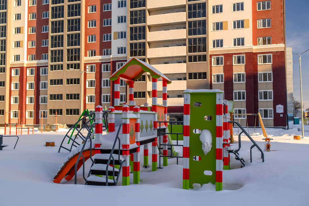 - Досуговую территорию мы разделили на 6 функциональных зон: огороженная спортивная площадка для стритбола с резиновым покрытием, спортивная зона для воркаута с резиновым покрытием, детская игровая площадка в ЭКО стиле с резиновым покрытием, детская игровая площадка с газоном для игры в песок, детская спортивная площадка с резиновым безопасным покрытием и мини-сквер с удобными парковыми диванами, окруженными зелеными туями.