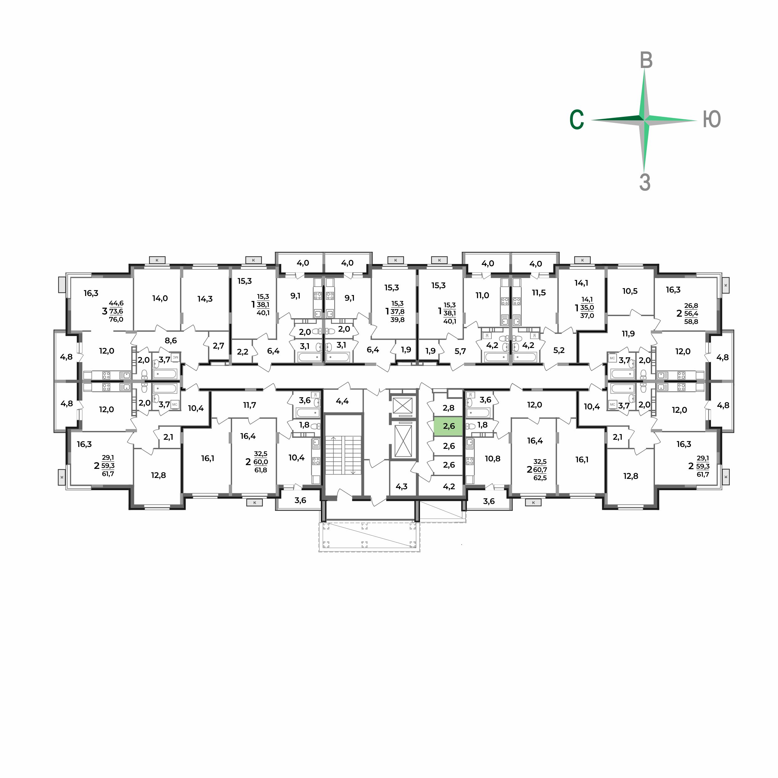 2.6 м²
