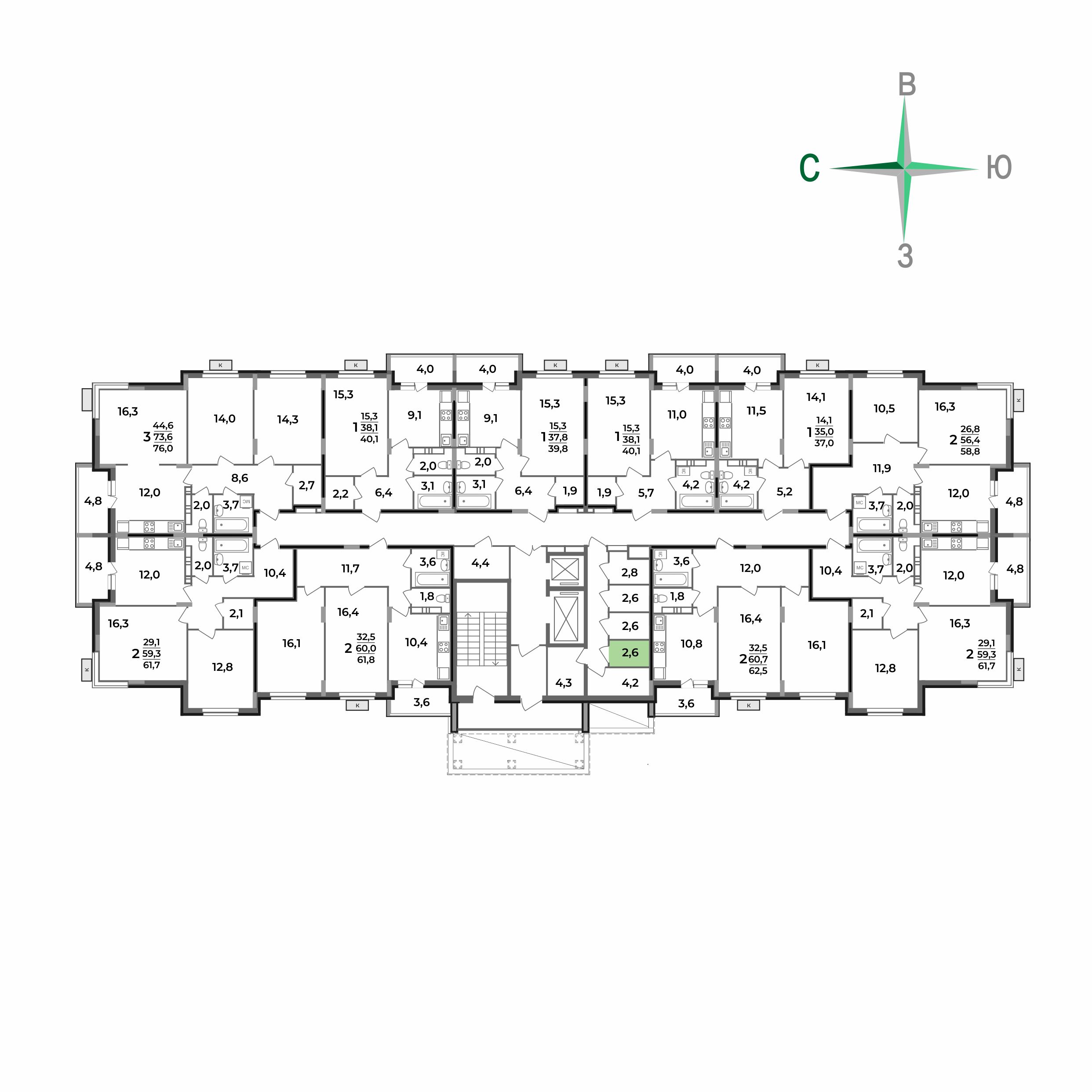 2.6 м²