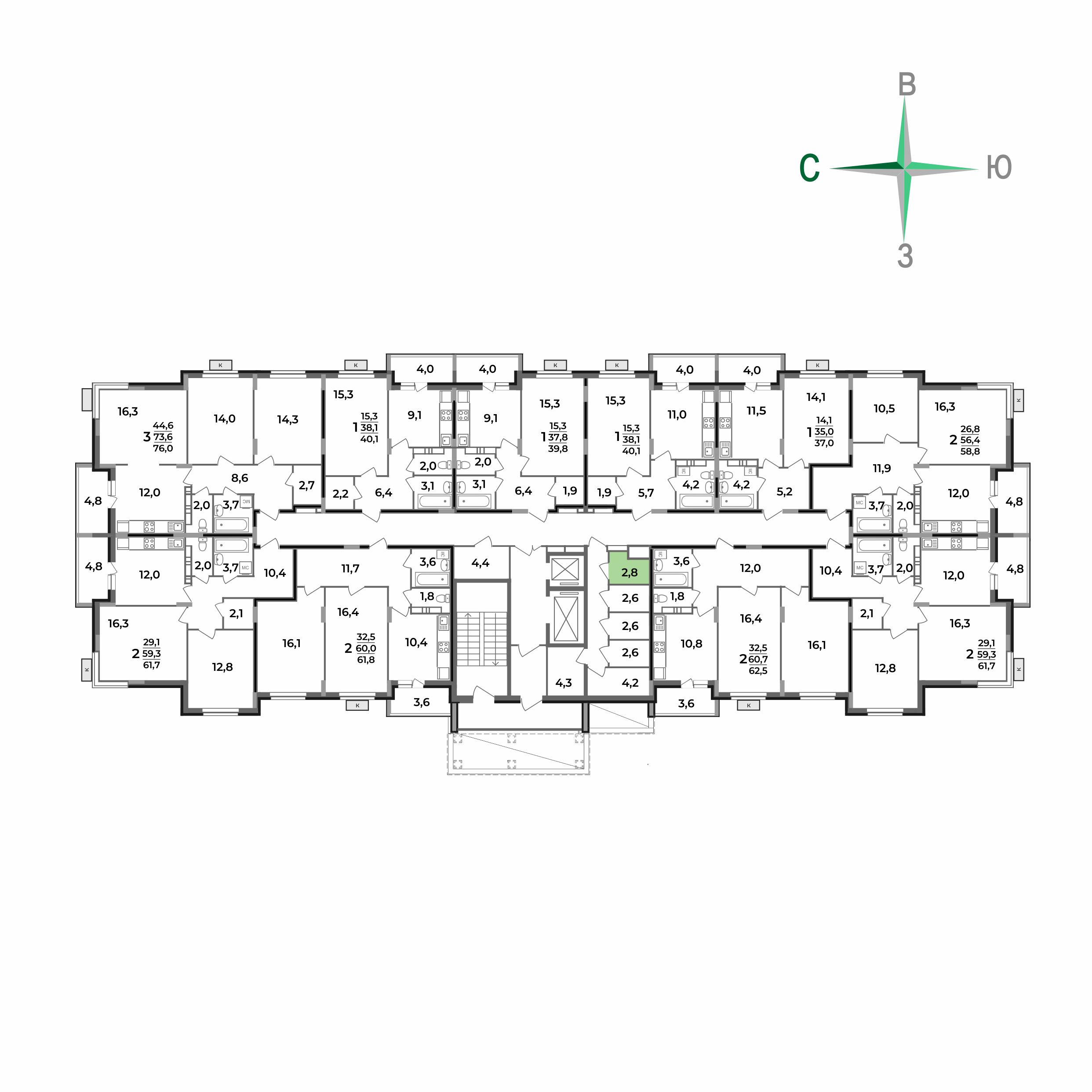 2.8 м²
