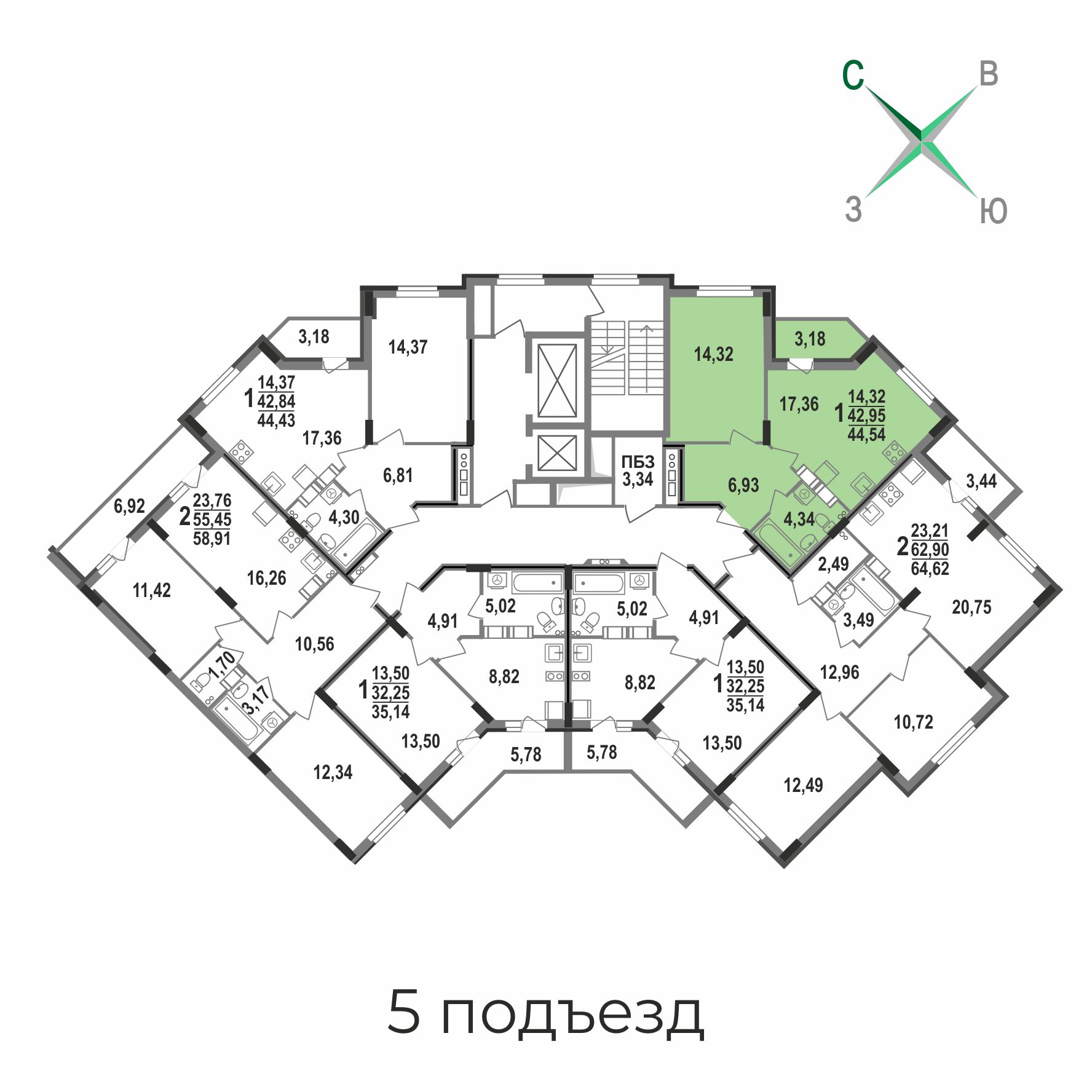44.43 м²