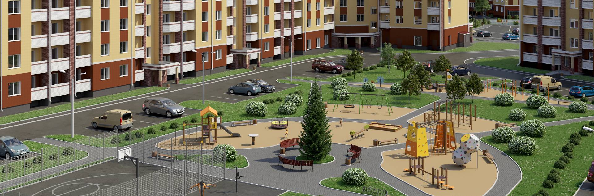Во дворе запланирована общая площадка на два дома (с учётом перспективной застройки соседнего ЖК Западный (ул. 9 мая, 4), что создаёт ощущение закрытого, защищённого пространства без транзитного движения. Зоны отдыха рассчитаны для жителей любого возраста.