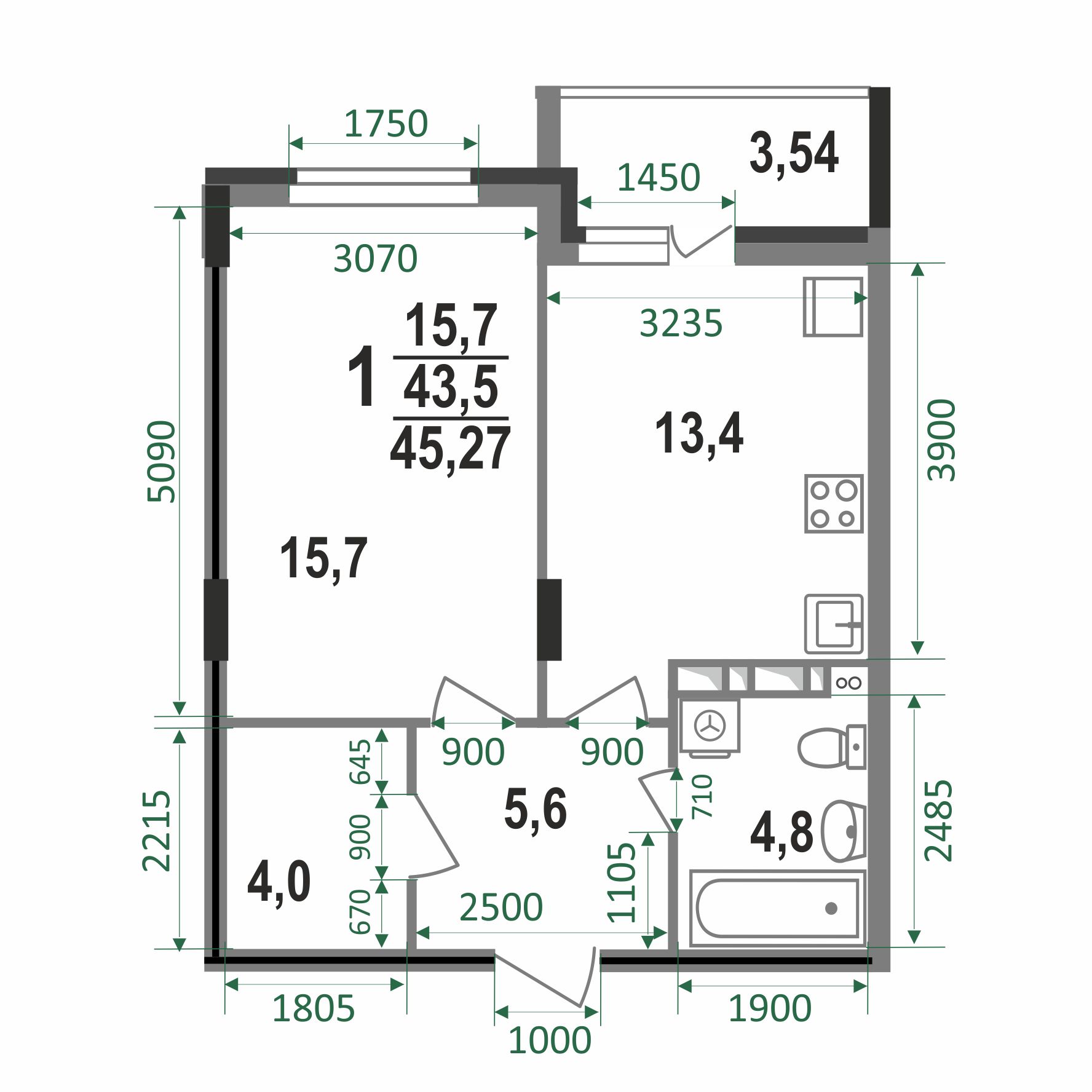 45.27 м²