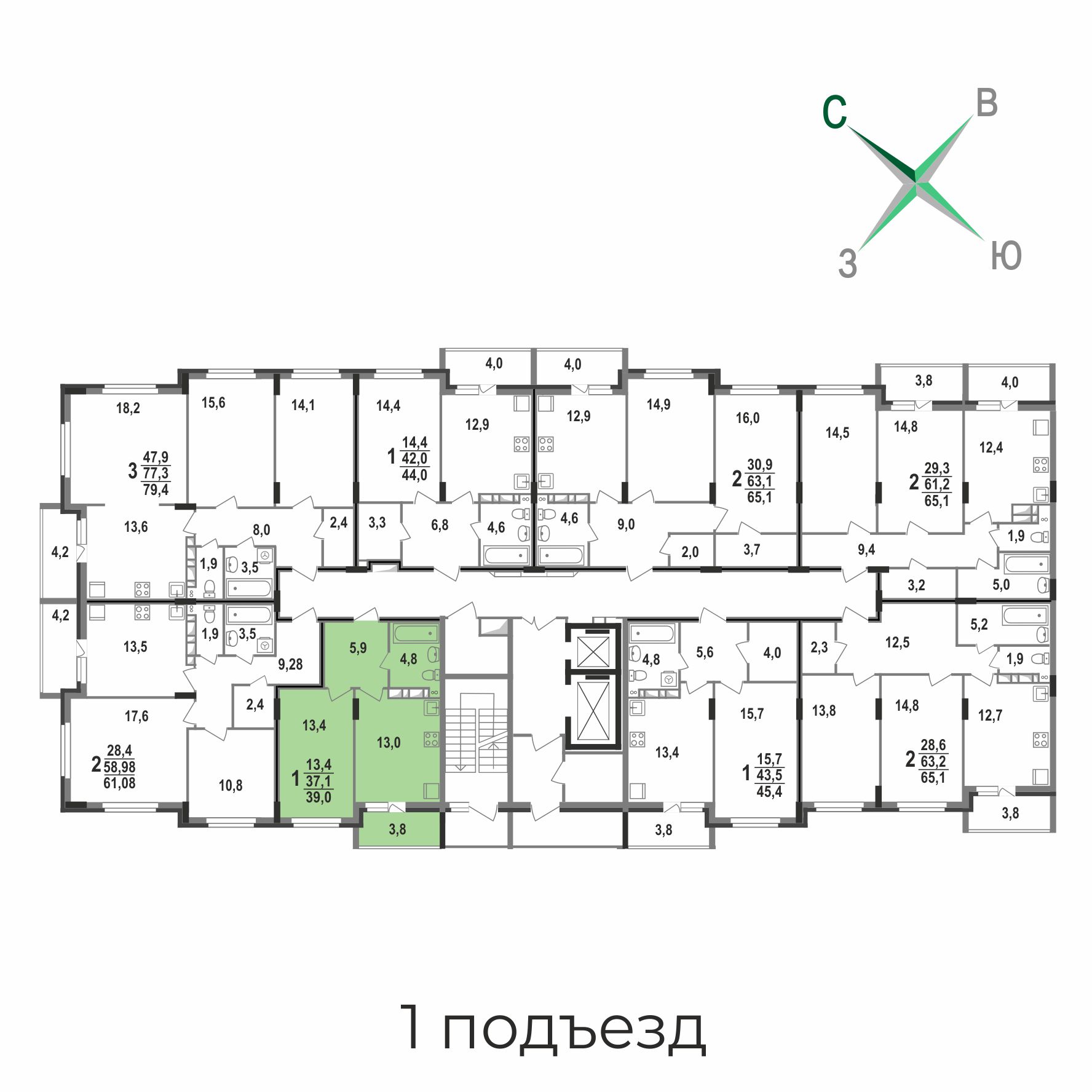39.0 м²