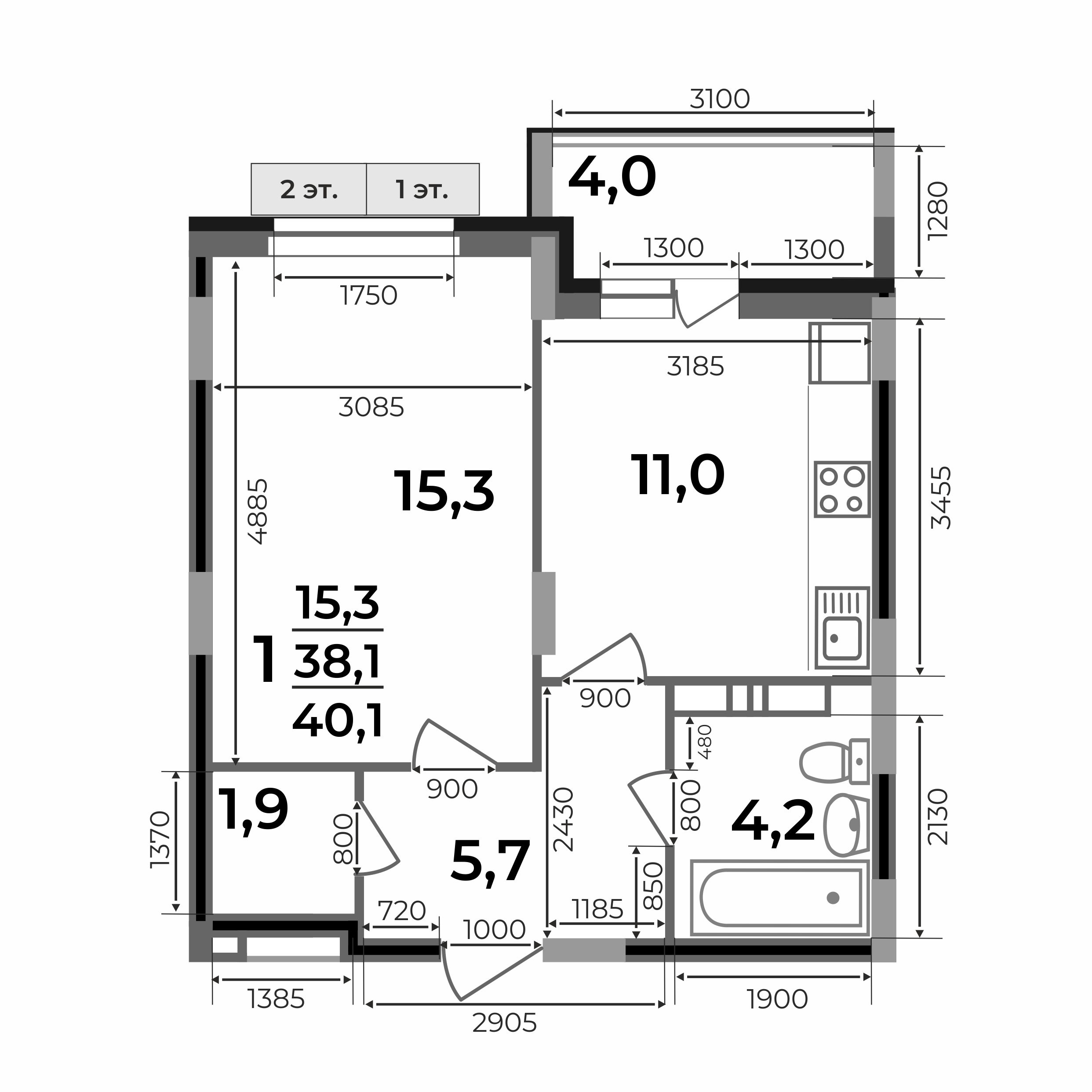 40.1 м²